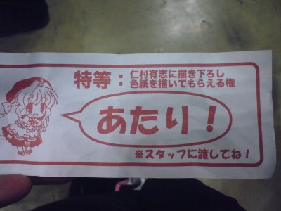 これががちゃがちゃ特賞の仁村有志さん書き下ろし色紙ですよ