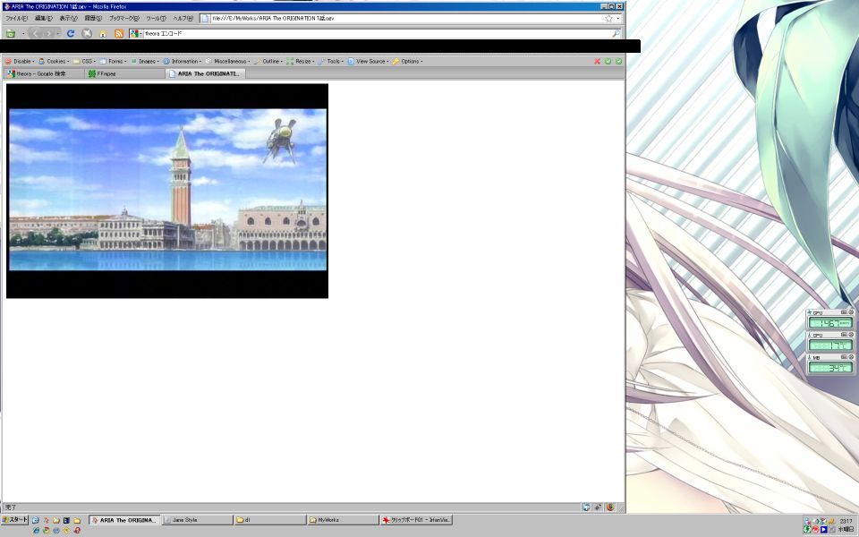 Firefox 3.5 RC2で昨日Theoraでエンコードした動画を再生してみたものの